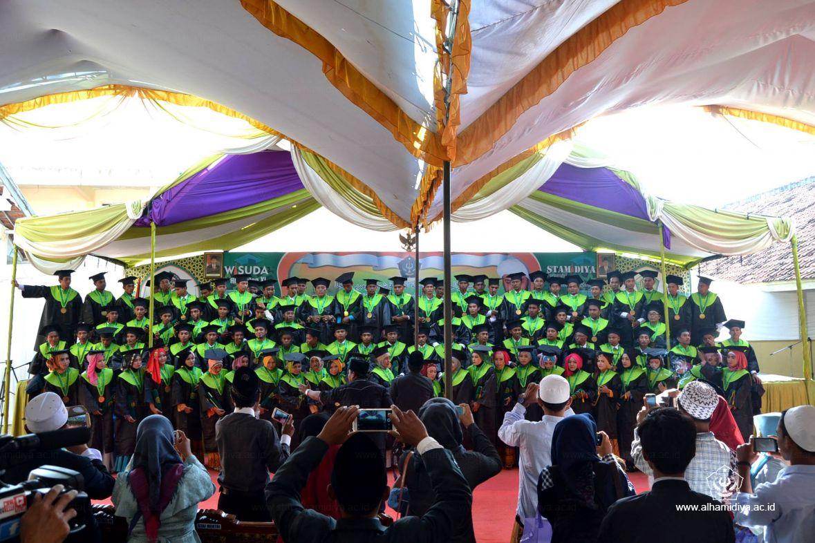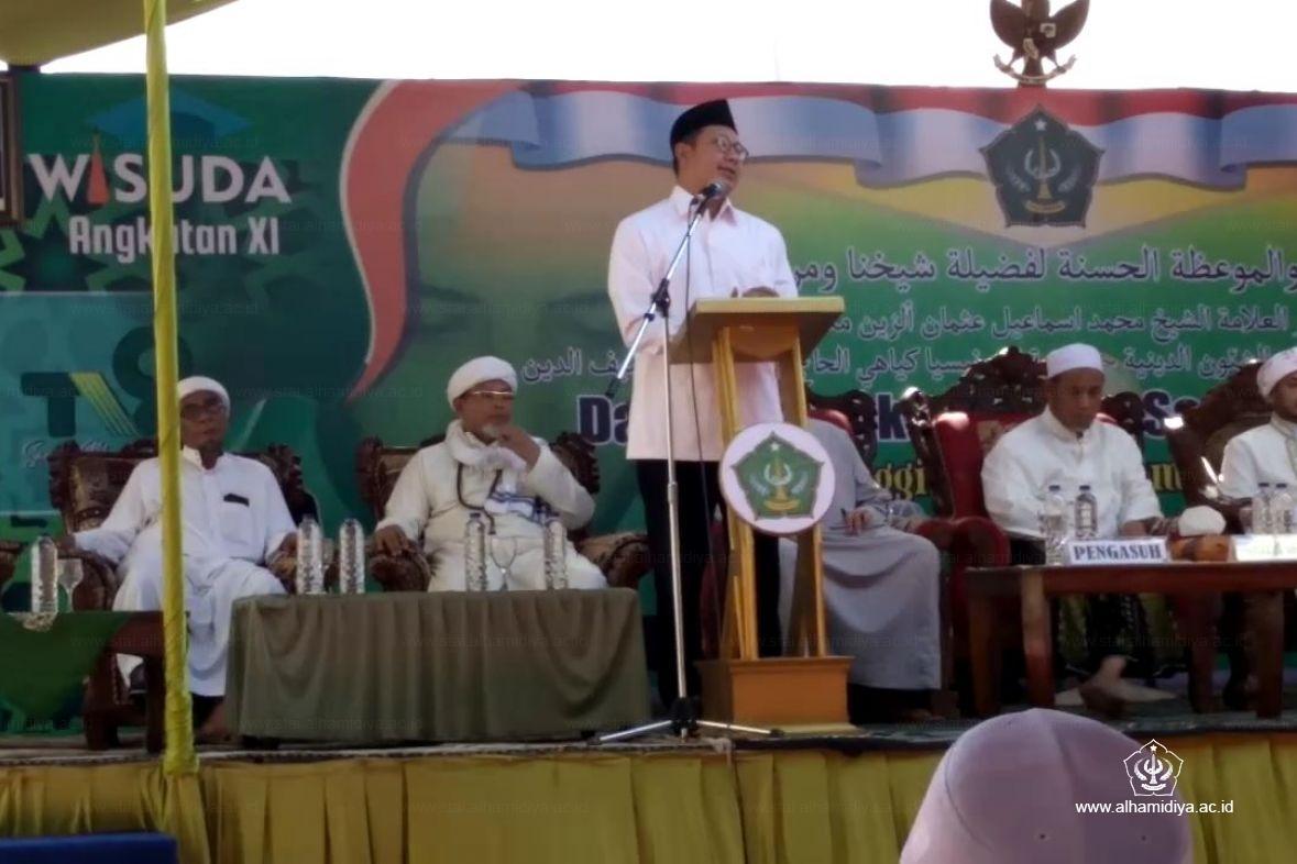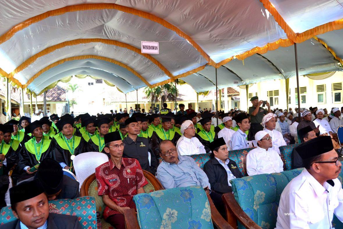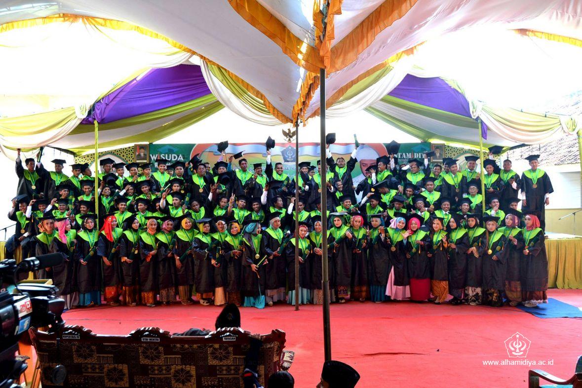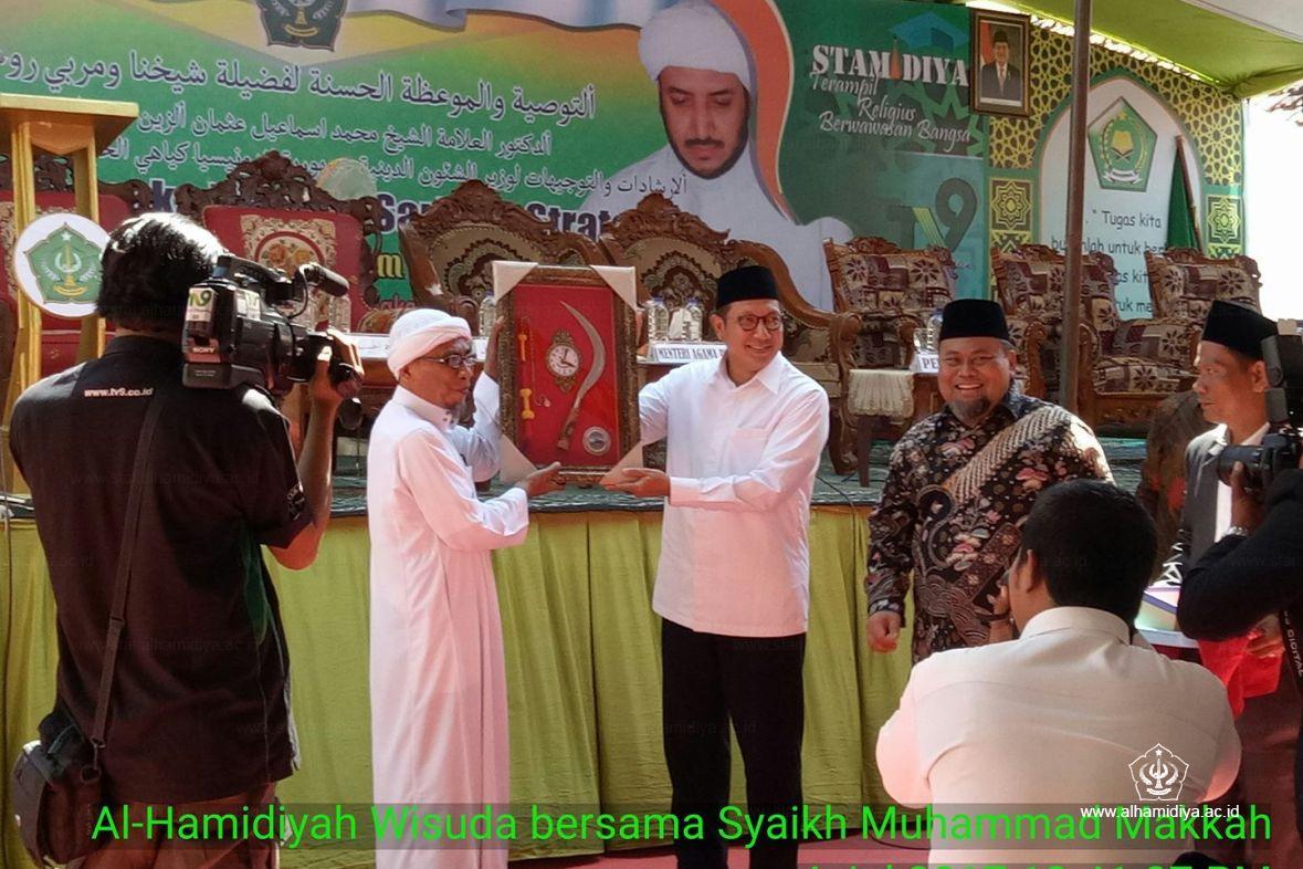 Sebagai ritual tahunan akademik, STAI Al-Hamidiyah Bangkalan mengadakan rangkaian Wisuda Angkatan XI. Wisuda kali ini semakin meriah, berbeda dengan tahun sebelumnya, sebab dihadiri langsung oleh Menteri Agama RI, Lukman Hakim Saifudin dan Syaikh al-Allamah Muhammad Ismain Zain al-Makki, [4 Juli 2017/10 Syawal 1438. Kehadiran dua tokoh besar dalam Wisuda kali ini menyebabkan berbagai pihak ikut hadir dalam wisuda kali ini. Sebutan saja misalnya, Prof. Dr. H. Abd A'la, M.Ag (Rektor UIN Sunan Ampel dan Kopertais Wilayah VI), Drs. H. Syamsul Bahri (kepala Kanwil Kemenag Jawa Timur), beberapa rombongan kemenag Jatim kabupaten dan para ulama serta kiai-kiai alumni Haromain. Dalam kesempatan wisuda ini, ada dua hal yang menarik menjadi catatan dari pesan Bapak Lukman Hakim. Pertama, mahasiswa harus terus semangat belajar dan semangat mengabdi. Wisuda bukan kata akhir dari proses sehingga mahasiswa yang lulus hari ini harus memanfaatkan waktu untuk belajar, lebih-lebih dapat melanjutkan ke jenjang selanjutnya. Lebih dari itu, mahasiswa harus kembali kemasyarakat dengan berupaya menularkan proses pendidikan dan pengajaran dimanapun berada. Dengan begitu, ilmu yang diperoleh di kampus STAI Al-Hamidiyah semakin memberikan manfaat kepada yang lain. Kedua, mahasiswa harus memiliki kearifan bersikap. Sikap arif para sarjana ini penting agar menjadi contoh bagi yang lain. Sikap arif yang dimaksud, para lulusan ini harus menyadari bahwa perbedaan dalam masyarakat merupakan keniscayaan bahkan telah menjadi _sunnahtullah_. Dengan sikap arif ini, para sarjana STAI Al-Hamidiyah menempatkan dirinya terus menggalakkan kearifan bersikap dalam ruang sosial yang berbeda, melalui usaha mendepankan dialog dan mengedepankan pertemuan lintas masyarakat dalam ranah persamaan; persamaan sebagai anak bangsa yang memiliki hak yang sama. Tidak kalah pentingnya, Syaikh Muhammad Ismail juga memberikan penyampaian bahwa tradisi Wisuda dalam kultur akademik adalah tradisi baik yang sesuai dengan sunnah Rosul sebab di dalamnya terdapat penghormatan kepada ilmu dan pemilik ilmu, momentum tasyakuran dengan makan serta minum bersama. Maka, tradisi baik ini layak diteruskan. Selanjutnya, Syaikh Muhammad berharap agar para Sarjana tidak melupakan dimensi ruhiyyah, dimensi yang terus bergerak dan mengikat dengan nilai nilai ketuhanan. Rasionalitas ilmiah, akan terasa kering, tanpa dimensi ruhiyyah. Maka, sarjana STAI Al-Hamidiyah harus bergerak seirama agar kelak kita hidup dalam keselamatan, baik di dunia maupun akhirat. Semoga kehadiran beliau-beliau dan doa para kiai memberikan inspirasi serta semangat agar ilmu-ilmu yang diperoleh para wisudawan-wisudawati di STAI al-Hamidiyah memberikan kemanfaatan sebab kita yakin kekuatan doa akan memberikan jalan kemudahan bagi mereka. Semoga berkah. Selamat untuk para wisudawan-wisudawati.