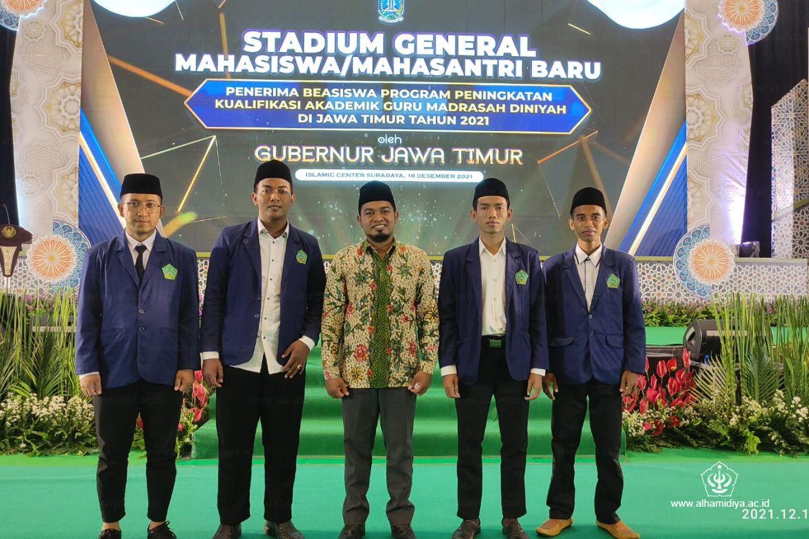 STAI Al-Hamidiyah Bangkalan sebagai salah satu PTKI penerima beasiswa tersebut turut berpartisipasi langsung. Perlu diketahui pula bahwa STADIUM GENERAL ini selain dihadiri langsung oleh peserta di gedung Islamic center juga dilaksanakan secara virtual. Peserta yang dihadirkan langsung ke lokasi hanya enam PTKI saja, STAI Al-Hamidiyah terpilih sebagai salah satu PTKI yang hadir langsung (mahasiswa penerima beasiswa hadir bersama Ketua Bapak Ahmadi,S.Pd.I., MPd. Serta didampingi oleh Bapak Ahmad Syifak, S.Pd.I dan Bapak Mukimin, S.Pd.I., M.Pd.