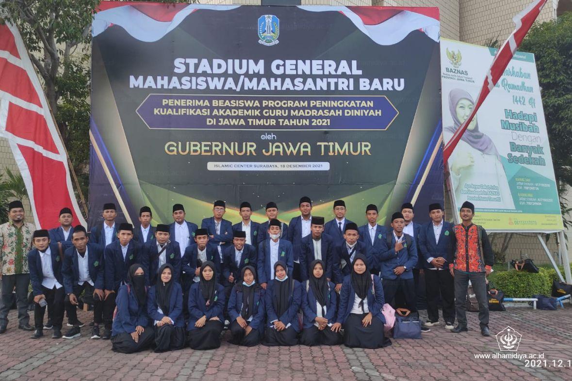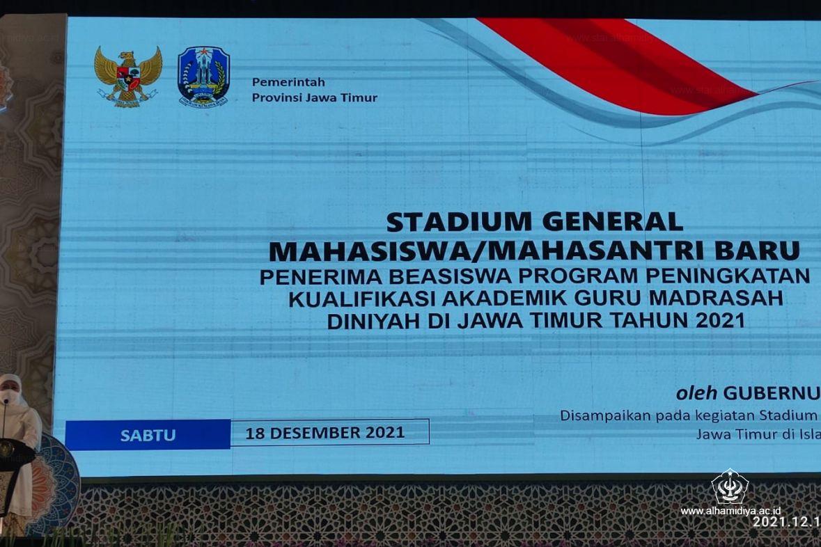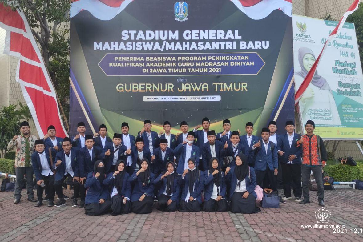 STAMIDIYA - Surabaya, 18 Desember 2021 : STADIUM GENERAL MAHASISWA/MAHASANTRI BARU OLEH GUBERNUR JAWA TIMUR dilaksanakan di gedung Islamic Center Surabaya bagi penerima Beasiswa Program Peningkatan Kualifikasi Akademik Guru Madrasah Diniyah di Jawa Timur Tahun 2021.
